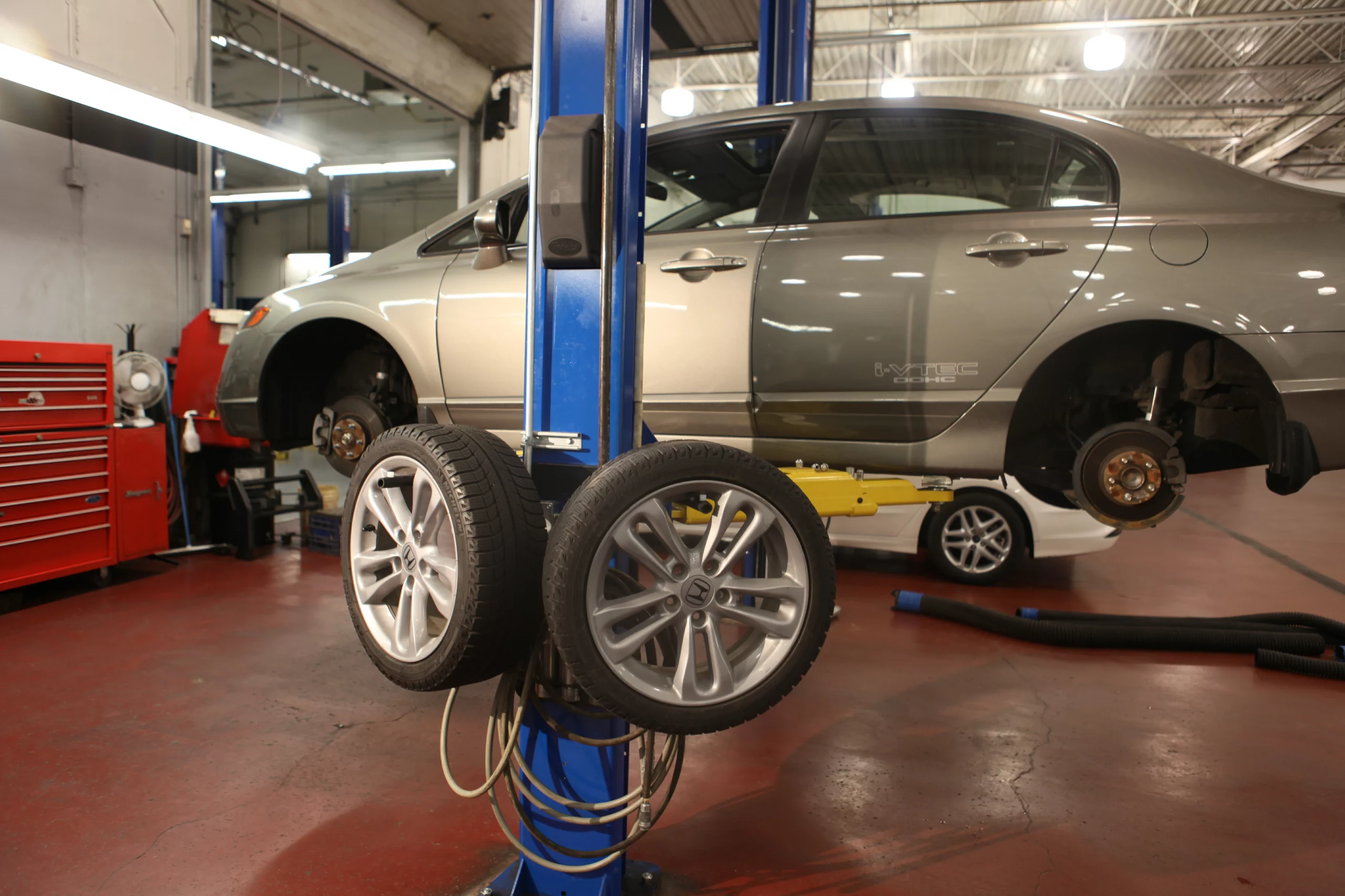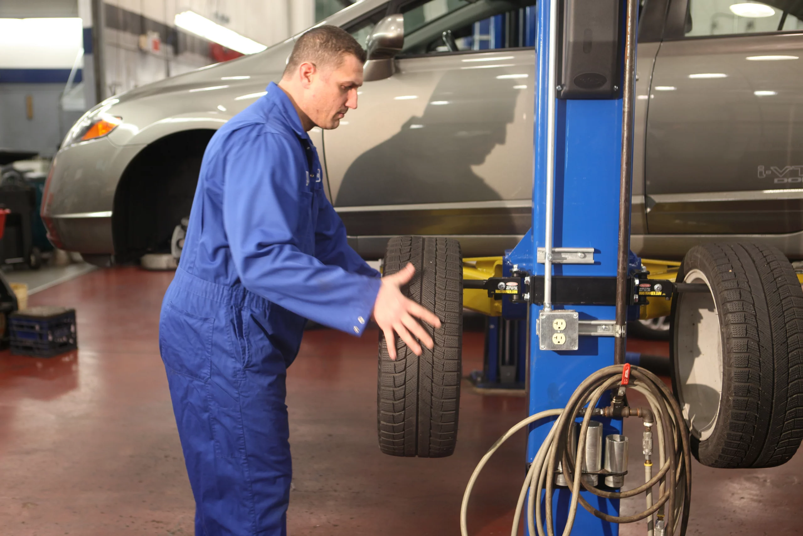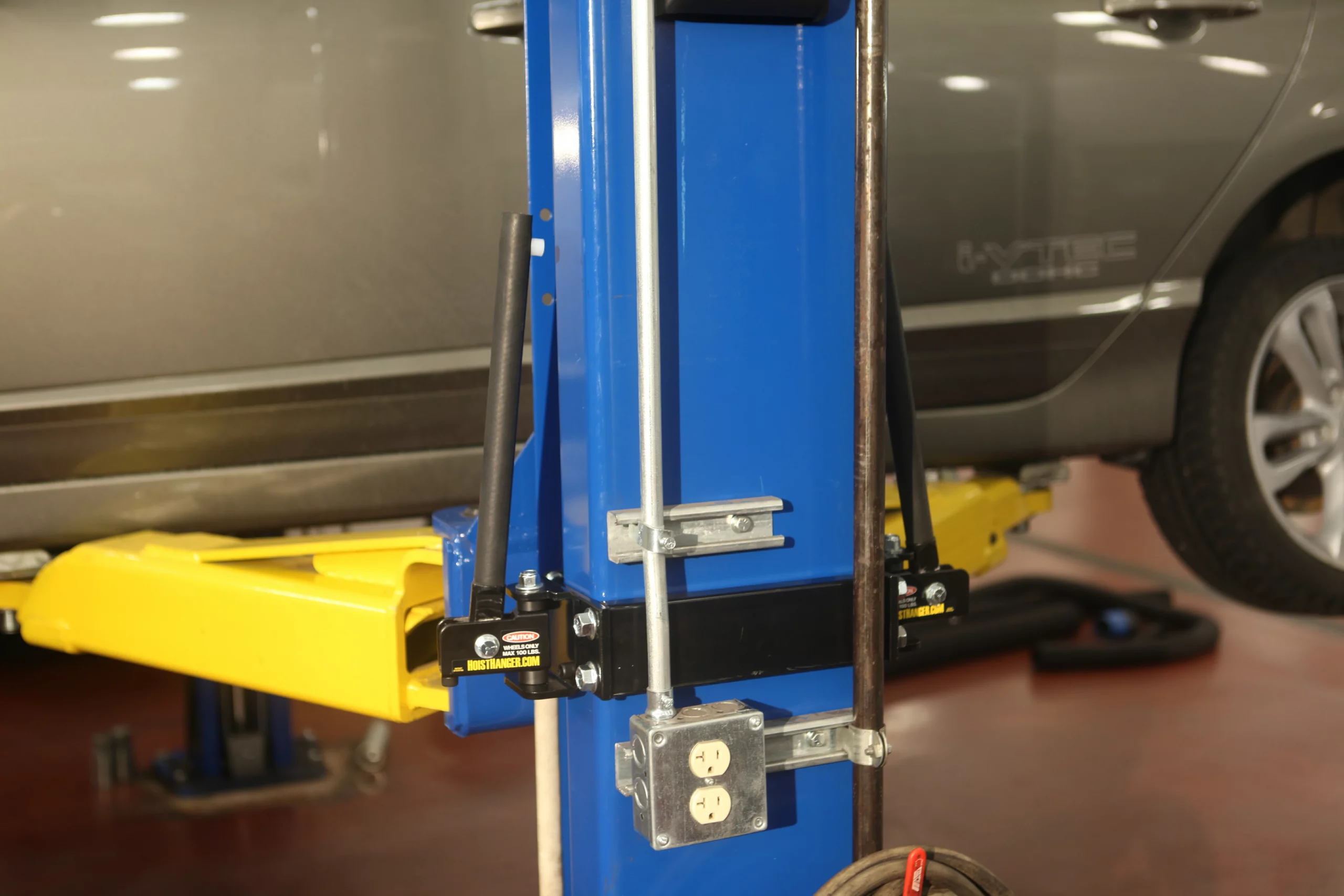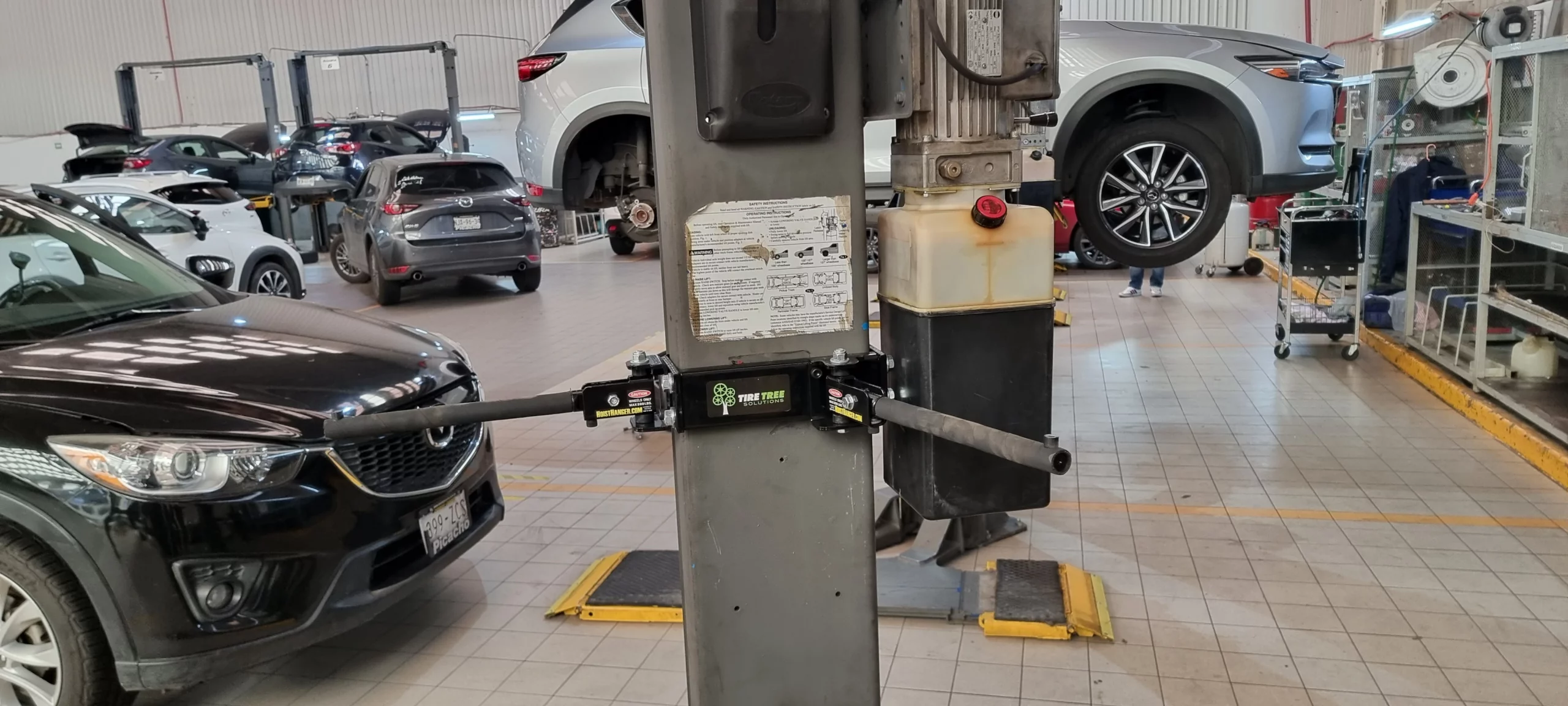 El Tire Tree es el miembro más nuevo de nuestra familia de accesorios para elevadores. Permite a los técnicos retirar y reinstalar conjuntos pesados de llantas y neumáticos sin necesidad de inclinarse, eliminando virtualmente el esfuerzo o lesiones en la espalda. Cuando el técnico puede colgar la llanta a un costado, se evita nuevamente la tensión lumbar.
