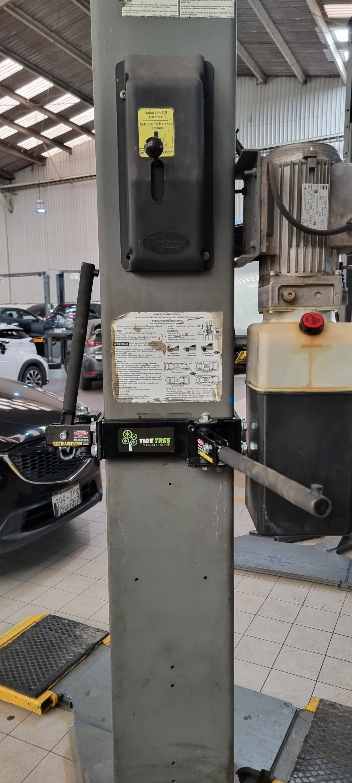 El Tire Tree se monta en la columna de elevadores asimétricos de dos columnas Rotary y Challenger. Su instalación es sencilla y, cuando no está en uso, sus brazos de doble articulación se pliegan contra la columna. Nuestro diseño patentado garantiza protección total para llantas y neumáticos de alto valor, soportando conjuntos de más de 200 libras (90 kg). Además, su diseño único permite al técnico elevar y descender el vehículo para realizar otras operaciones, mejorando tanto la productividad como la seguridad. ¡Es una herramienta indispensable para TODO profesional que trabaje con llantas y neumáticos!
